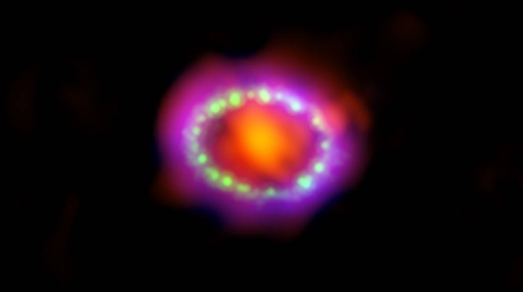 Ezt a többletet a pulzárról származó részecskék okozhatják, amelyek beleütköznek a környező anyagfelhőbe, és egy ún. pulzár-szél ködöt hoznak létre (pulsar wind nebula, PWN). Vagyis, az elmélet szerint az SN 1987A robbanása során keletkezett neutroncsillag pontosan ott van és úgy viselkedik, ahogy arra számíthattunk, ám a pulzárokra jellemző röntgen-fotonok fennakadnak a szupernóva belsejében lévő sűrű gázfelhőben.