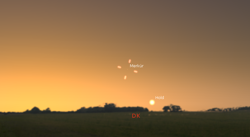 Legnagyobb nyugati kitérésbe ér a legkisebb bolygó, 25 fokra távolodik el a Naptól. Sajnos ez nem sokat javít a látóhatár feletti csapnivaló magasságán, mindössze 6,5 fokon lebeg a polgári szürkület kezdetekor.