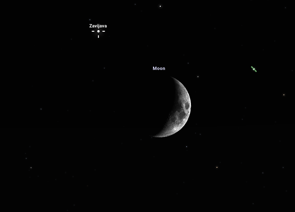 A Hold sarlója egyre csak növekszik az idő előrehaladtával, s július 11-ére eléri teljes méretének 31%-át. Ezen a napon mindezek mellett kedvenc égitestünk este együtt áll a Szűz csillagképben található, Zavijava elnevezésű csillaggal, amely a Béta Virginis nevet is viseli, s emellett a Szűz csillagkép ötödik legfényesebb csillagaként tartják számon. A navigációs szürkület beálltakor nyugati irányban a Hold mindössze 10 fokos magasságban lesz a horizont felett és 31'-re közelíti meg a Zavijavát, ami már szoros együttállásnak minősül. Aki teheti, mindenképpen nézze meg!