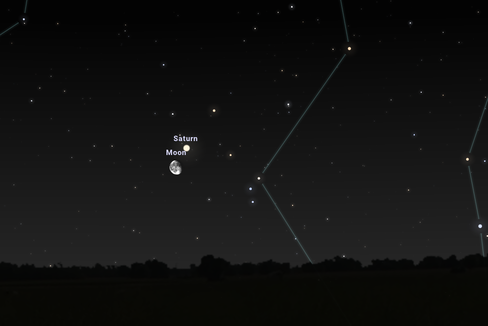 Nincs is szebb látvány, mint amikor két fényes égitest együtt kel fel a keleti horizonton, s szorosan összefonódva emelkedik egyre magasabbra az égbolton. Július 24-én a Szaturnusz és a Hold égi táncát figyelhetjük meg. Este 22:17-kor a gyűrűs bolygó mindössze 22'-es távolságban látszik majd a 85%-os fázisban pompázó, éppen a látóhatár vonalán felkelni látszó Hold felett, ám az se csüggedjen, aki a felkelés pillanatának nem lehetett tanúja. Később, amikor a konstelláció kicsit magasabbra ér az égbolton, égitestjei akkor is szorosan együtt állnak majd, hogy meggyönyörködtessék minden észlelő szemét.