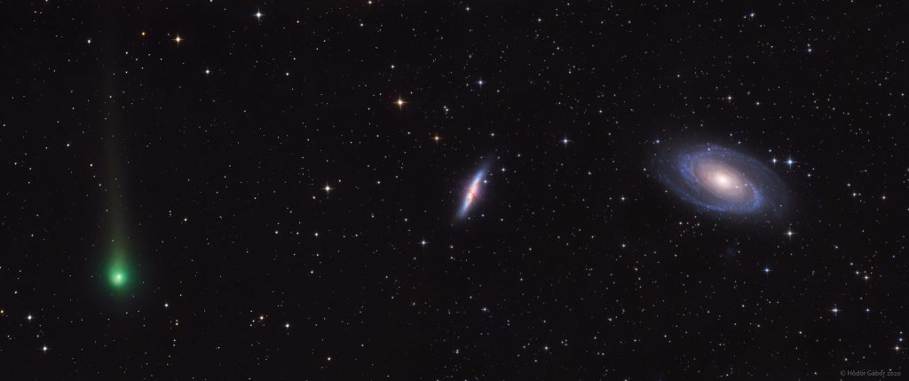 Júniusban pedig folytatja útját a Göncölszekérben és felkeresi annak megannyi galaxisát, égi vándorként kalauzolva végig minket a Göncölszekér galaxisai közt. Mélyég-fotósok, jobbnál jobb kompozíciók várhatók üstökös-galaxis együttállás fronton!