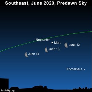 Miután a Hold meglátogatta a Jupitert és a Szaturnuszt, két kisebb bolygót is célba vesz. Június 13-ára beéri a Marsot és a Neptunuszt. Sajnos a Neptunusz szabad szemmel nem látható, így szabad szemmel csak a fogyó Holdat és a vörös bolygót látjuk majd.