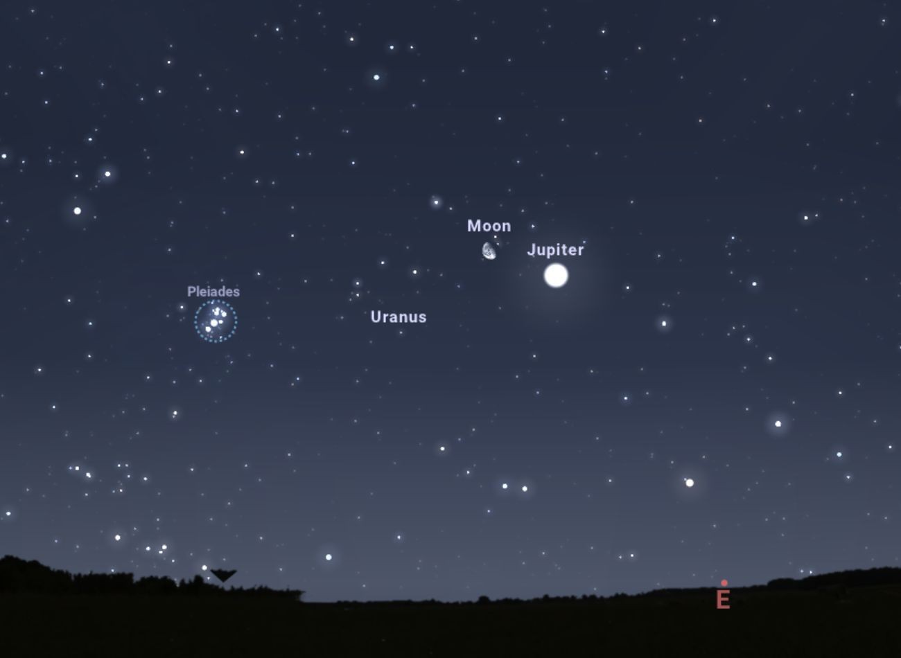 Augusztus elején a Jupiter–Hold–Uránusz–Fiastyúk négyese a hajnali égen volt megfigyelhető. Szerencsénkre most nem kell sokáig fentmaradni vagy korán kelni, mivel 23:00-kor a keleti égbolton, 10-15 fok között lesz észlelhető mind a négy objektum.