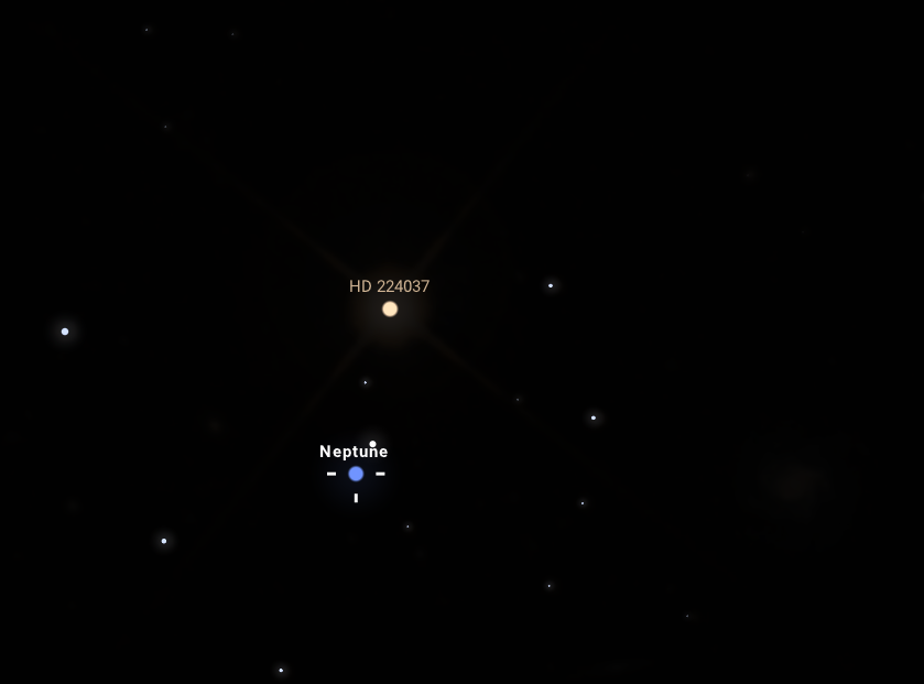 Az se keseredjen el, akinek nem sikerült szerdán megpillantania a párost, hiszen az együttállás az elkövetkező napokban is megfigyelhető, és igen látványos lesz majd, igaz, a két égitest egyre csak távolodik egymástól az idő múlásával. A szerdai napon 18:30-kor azonban mindössze 73"-re lesz majd egymástól a Neptunusz kékes színű, 7,8 magnitúdós látszó fényességű, 2,2”-es korongja és a HD 224037 jelöléssel ellátott csillag 7,6 magnitúdós, narancs színben pompázó fénypöttye.
