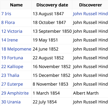 | (115) Thyra | November 19 | 9,9 | Perzeusz | 15 |
