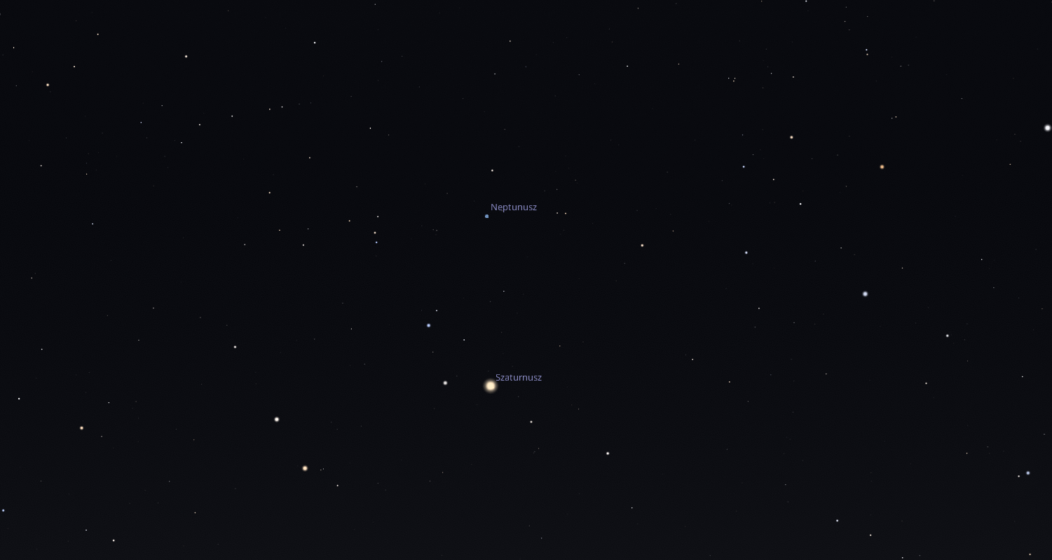 Ne hagyd ki ezt a ritka alkalmat, hogy szemtanúja legyél a Neptunusz különleges megjelenésének! Ráadásul a Neptunusz alatt a gyűrűs Szaturnusz is megfigyelhető, ez a bolygó pedig 3 nappal ezelőtt volt oppozícióban.