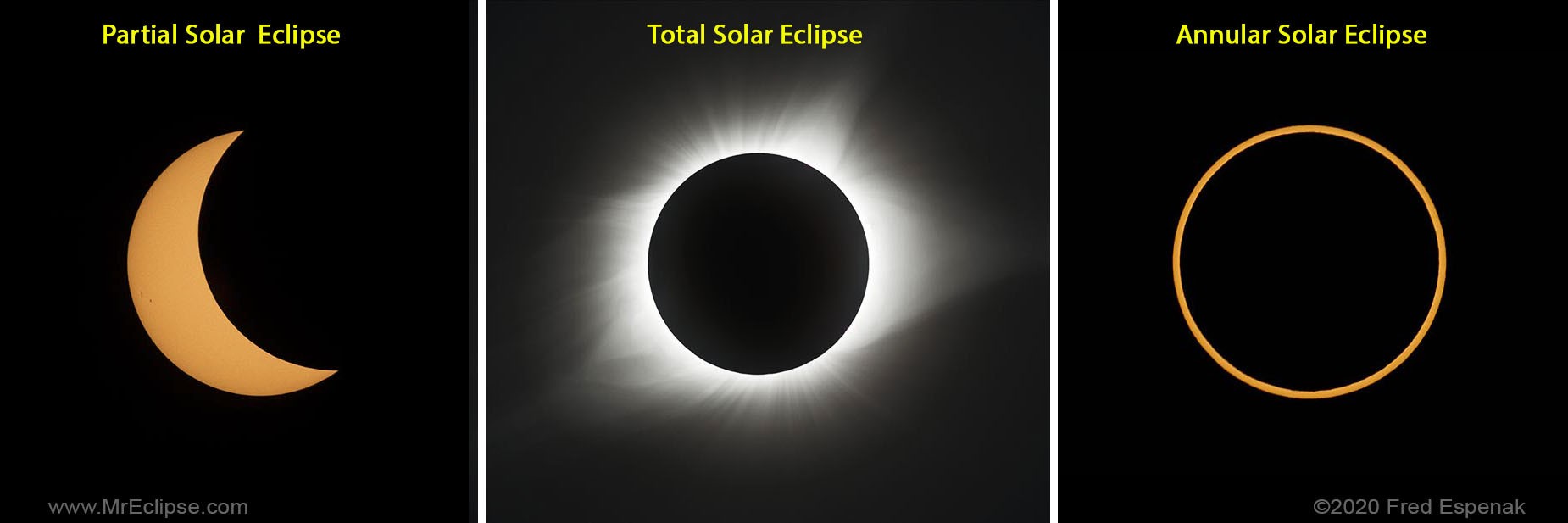 A teljes napfogyatkozáson kívül más típusok is előfordulnak. Részleges napfogyatkozás esetén a Hold teljes árnyéka egyáltalán nem vetül a Földre, csak a félárnyék érinti azt. A Földnek egyetlen pontján sem látható ilyenkor a Hold úgy, hogy teljesen eltakarja a Napot. Gyűrűs napfogyatkozás akkor jön létre, ha a Nap látszó mérete nagyobb, mint a Hold látszó mérete. Ilyenkor még a napfogyatkozás közepén is látszik a napkorong külső része. A részleges napfogyatkozáshoz hasonlóan a napkorona nem látható.