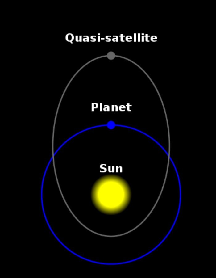 Léteznek viszont olyan kisebb objektumok, például az aszteroidák, amik méretben hasonlíthatnak a holdak méretéhez, a bolygókhoz hasonlóan szintén a Nap körül keringenek, de egy bolygóval azonos keringési idejű, ám attól valamiben eltérő pályán mozognak, és annak a gravitációs ereje is hatással van rájuk. Ezeket koorbitális pályán levő objektumoknak nevezünk. Az ilyen pályákon mozgó testek közül azokat, amik ilyen keringésük során a bolygóhoz közel kerülnek, és a bolygó nézőpontjából megfigyelve akörül látszanak keringeni, de vele ellentétes irányban, általában egy instabil, elliptikusabb pályán, kváziholdaknak nevezzük.