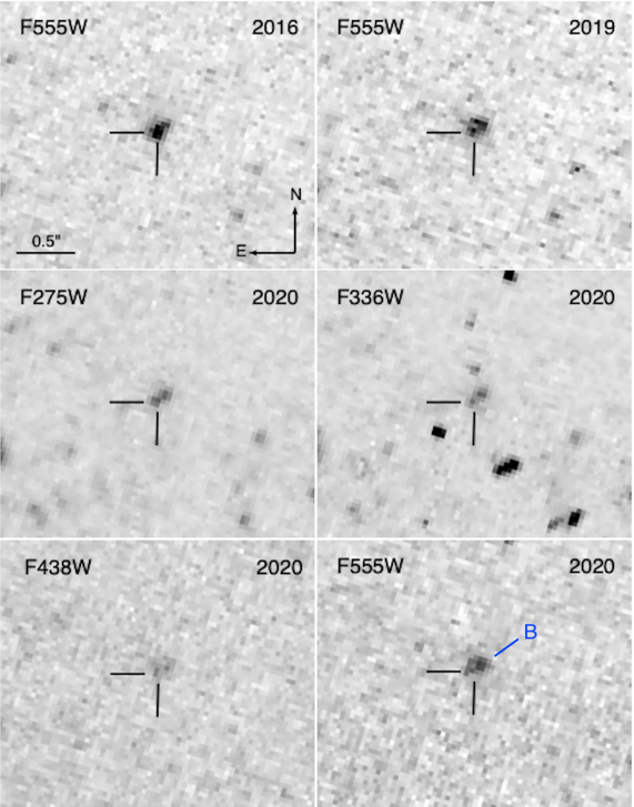 Egy ilyen, letépett köpenyű szupernóva-robbanás esetén a társcsillag továbbra is vígan élné életét, vagyis a tett színhelyén továbbra is látnunk kellene a halott csillag párját (magát a halott csillagot abban az esetben látnánk, ha a belőle olyan neutroncsillag alakult ki, amelynek mágneses tengelye a csillag gyors forgása miatt időnként pontosan a Föld felé néz – azaz kizárólag egy pulzár lenne megfigyelhető). Ori D. Fox és kutatótársai az SN 2013ge nevű, 2013-ban robbant letépett köpenyű szupernóva esetében tanulmányozták, volt-e a fantasztikus véget érő csillagnak társa?