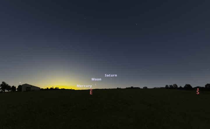 ekkor ugyanis amellett, hogy megkezdődik a Merkúr hajnali láthatóságának körülbelül egy hónapos időszaka, a Szaturnuszt, illetve a Marsot is megfigyelhetjük, amint együtt állnak a Hold vékonyka sarlójával keleten. Mindezekhez pedig nem is muszáj este fenn maradnunk, elég, ha hajnalban korábban kelünk a szokottnál, ezek a jelenségek ugyanis ezúttal nem alkonyatkor, vagy az éjszaka első felében, hanem napkelte környékén fognak bekövetkezni. Mindenképpen érdemes tehát az eget kémlelni akár szabad szemmel, akár kis távcsővel, és megkeresni rajta Naprendszerünk mesés szépségű bolygóit.