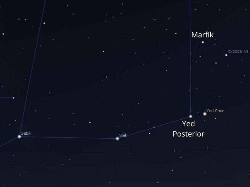 Október 19-én még tovább javulnak az üstökös észlelésének feltételei. Az égi vándor ekkor a Marfik (Lambda Ophiuchi) csillag mellett jár, mely 3,8 magnitúdós fényességével szabad szemmel is látható. Szombaton újból a nyugati égbolt felé kell néznünk 19:00-kor, és a Kígyótartó jellegzetes páros csillagát, a Yed Priort és Yed Posteriort kell megkeresnünk. A Marfik csillaga 7 fokkal lesz ezek fölött. A 3,8 magnitúdós csillag fényessége hasonló lesz, mint az üstökösé, mely 2,5 fokkal jár a Marfiktól jobbra lefelé (nyugatra). A 23 fokon lévő égi páros észlelését a 93%-os Hold akkor még alig fogja zavarni, azonban a páros 21:27-kor lenyugszik. Ekkor még szabad szemmel látható lesz az üstökös, azonban érdemes egy kisebb binokulárt használni a megfigyeléséhez.