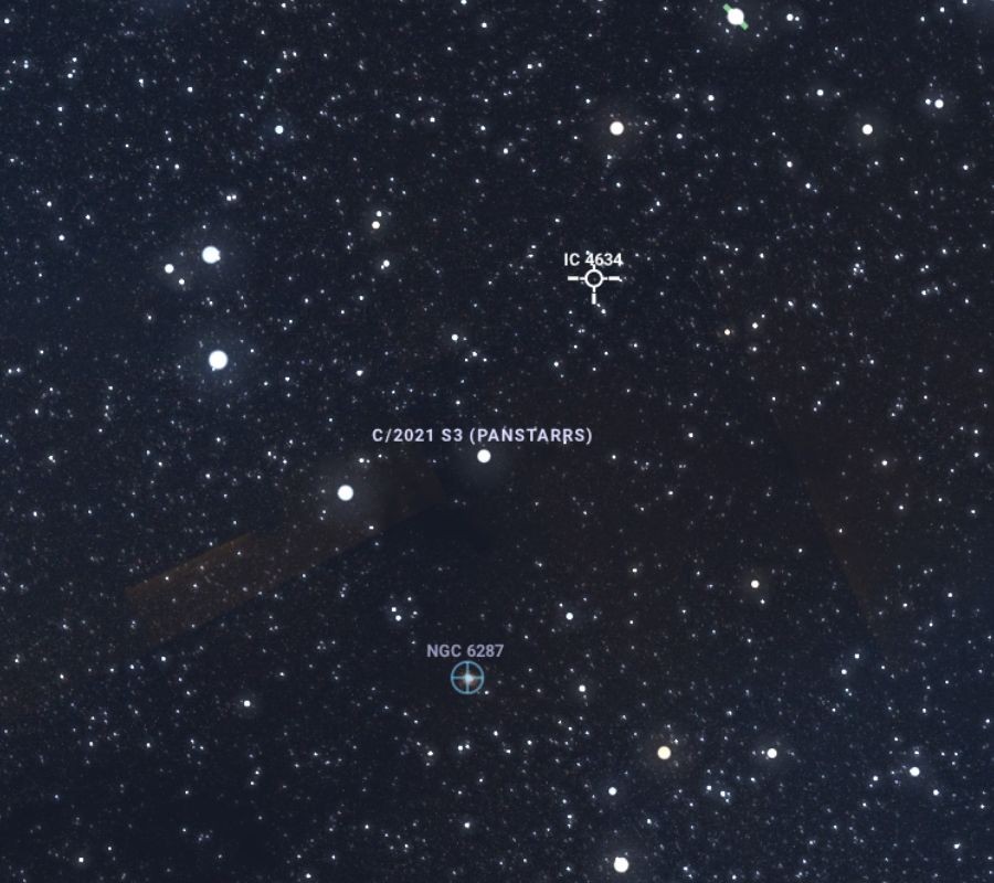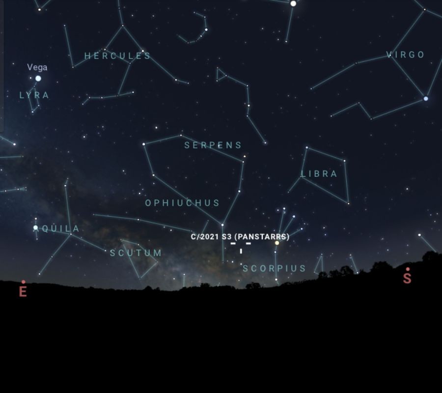 Az első lehetőségünk február 8-án hajnalban, 04:45 után lesz. A délkeleti égbolton a Kígyótartó csillagképben, 10 fokos magasságban lesz, és egy órán át észlelhető a kométa. A horizont közelsége miatt tereptárgyaktól és fényszennyezéstől mentes helyről érdemes próbálkozni. Az előrejelzés szerint 7,6 magnitúdós lesz az égi vándor, amit binokulárral észlelni igazi kihívás. Ekkor még a távcsöves megfigyelők lesznek előnyben, mivel két mélyég-objektum között lesz megtalálható a C/2021 S3.