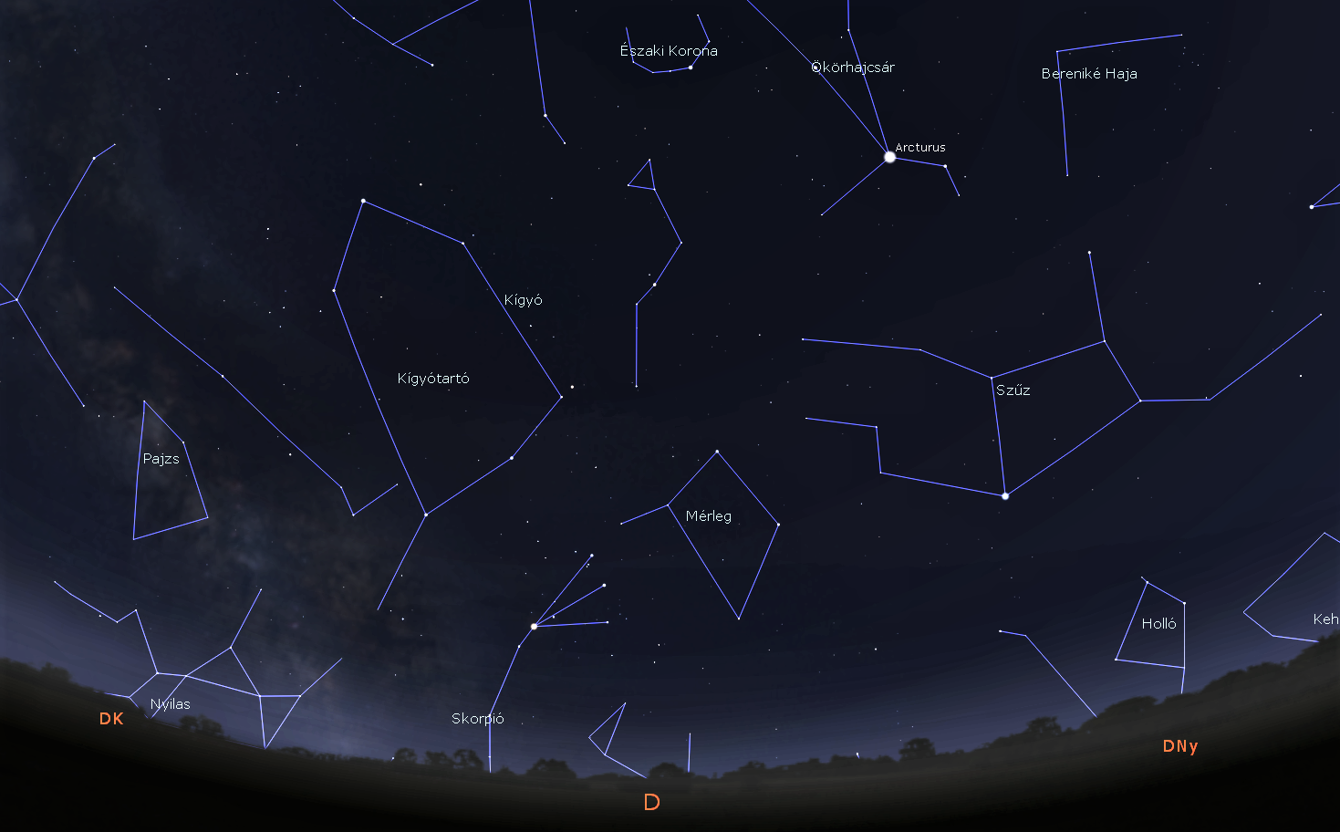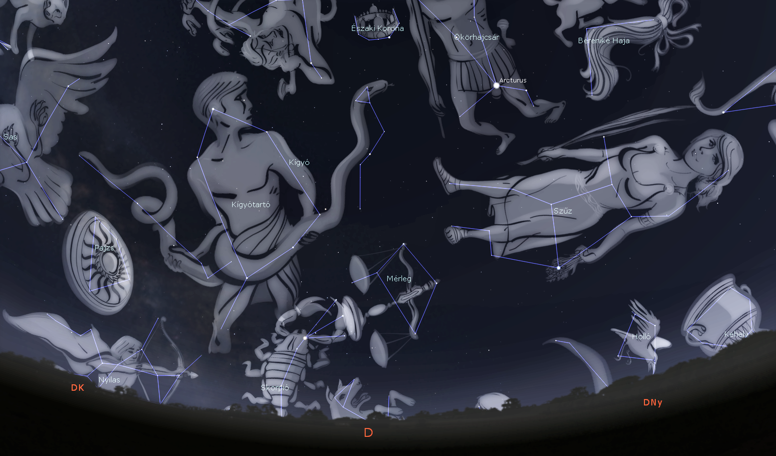 A júniusi égbolt számos rendkívül látványos égi csodát tartogat számunkra. Ezek közül nehéz kiválasztani a bemutatásra legméltóbbat. Hosszas mérlegelés után azonban a Mérleg csillagkép felett található gyönyörű gömbhalmazra, illetve a Kígyó nyakát alkotó kettőscsillagra esett választásunk.