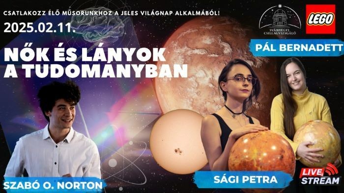 A világnap alkalmából a Svábhegyi Csillagvizsgáló különleges beszélgetést szervez, amelyen két fiatal magyar hölgy, Pál Bernadett és Sági Petra osztja meg tapasztalatait. Bernadett a Marson található folyékony víz kutatásával szerzett PhD fokozatot, míg Petra az ELTE csillagász mesterszakos hallgatója és a Svábhegyi Csillagvizsgáló bemutatócsillagásza. A beszélgetést február 11-én este 6 órától lehet követni a Svábhegyi Csillagvizsgáló YouTube csatornáján – egy kis extra csavarral: miközben a résztvevők megvitatják a tudományos életpálya szépségeit és kihívásait, egy LEGO Mars űrállomás-modellt is összeraknak!