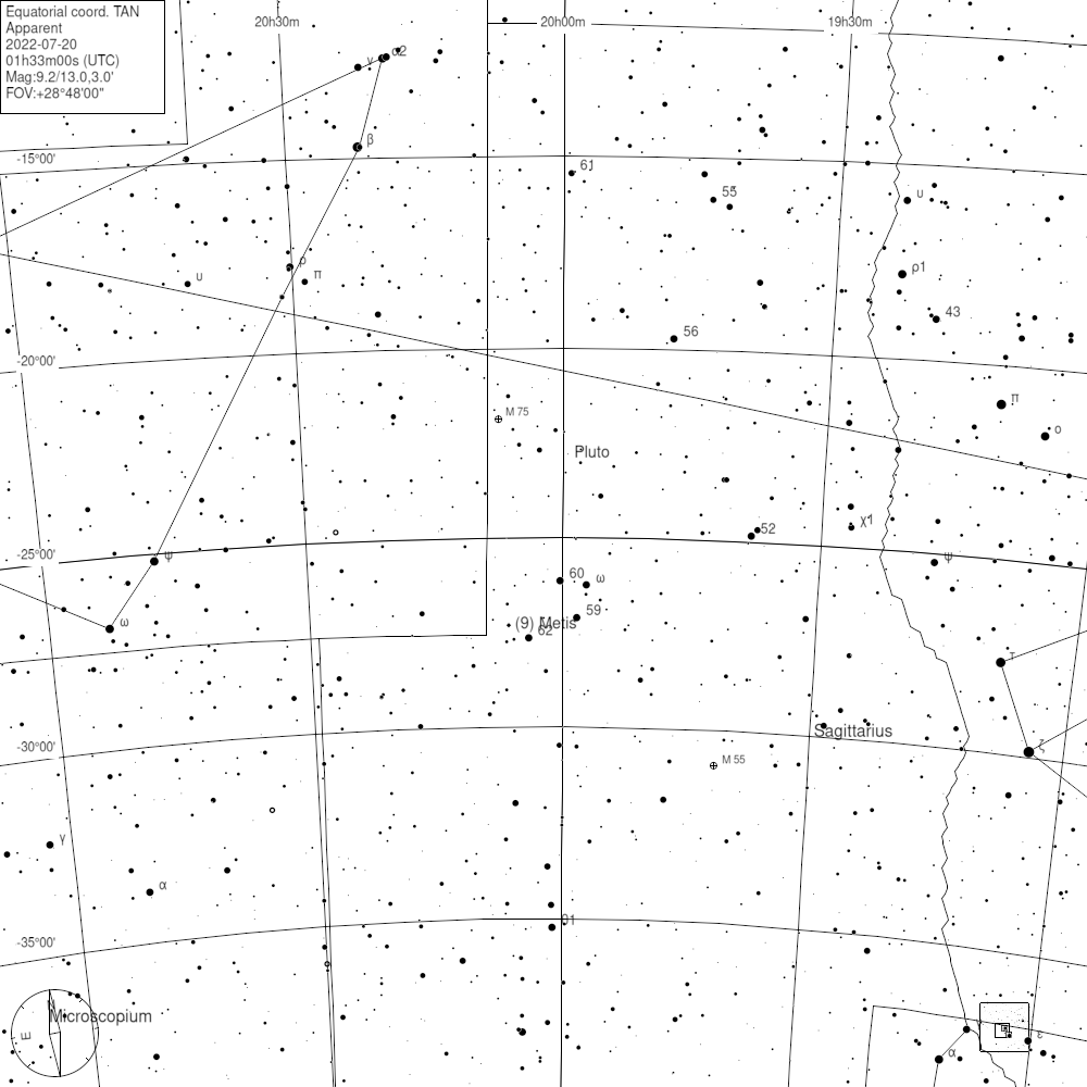 A 134340 Pluto törpebolygó az antikvitás embere számára rendkívüli halványsága miatt – akárcsak az Uránusz és a Neptunusz – ismeretlen volt. Felfedezésére egészen 1930-ig kellett várnunk, amikor az akkor 23 éves Clyde Tombaugh a Lowell Obszervatórium fotólemezeit átvizsgálva február 18-án felfedezte a kilencedik bolygót. Apró mérete és rendkívüli távolsága miatt sokáig rendkívül keveset tudtunk róla, a Hubble-űrtávcső felvételein is mindössze néhány tucat pixel árulkodott a rejtélyes égitest felszínéről. 2022 július 20-án a Föld oppozícióba kerül az alvilág uráról elnevezett törpebolygóval, vagyis épp a Nap és a Pluto közé kerül. Ezen az éjszakán van a legjobb lehetőségünk, hogy megpillantsuk a sötét messzeségben.