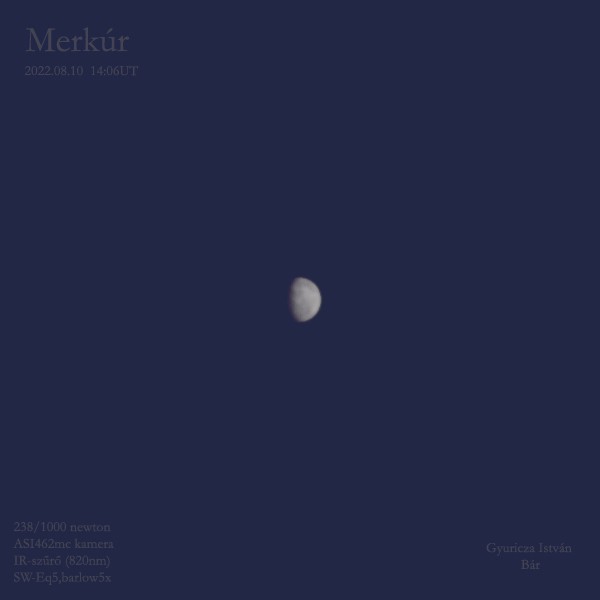 Ugyanezen a napon a hajnali 05:58-kor kezdődő polgári szürkületkor a dichotómiában levő Merkúr már -0,4 magnitúdós fényességű, és tíz foknál is magasabban jár, érdemes hát kicsit korábban kelni és becserkészni az idei láthatósága csúcsán levő bolygót!