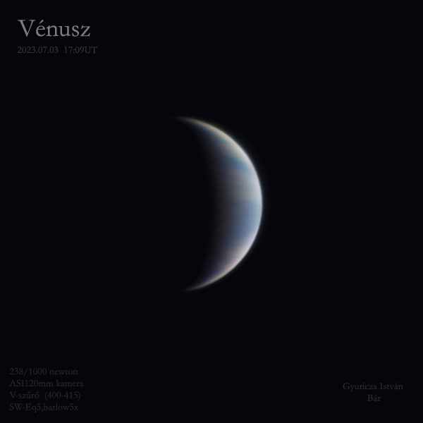 Vénusz: Uralja a hajnali eget, 18-án, legnagyobb fényességekor -4,5 magnitúdós 26,4%-os, 38"-es hatalmas sarló, de egész hónapban ragyogó fényével vonzza a tekinteteket.