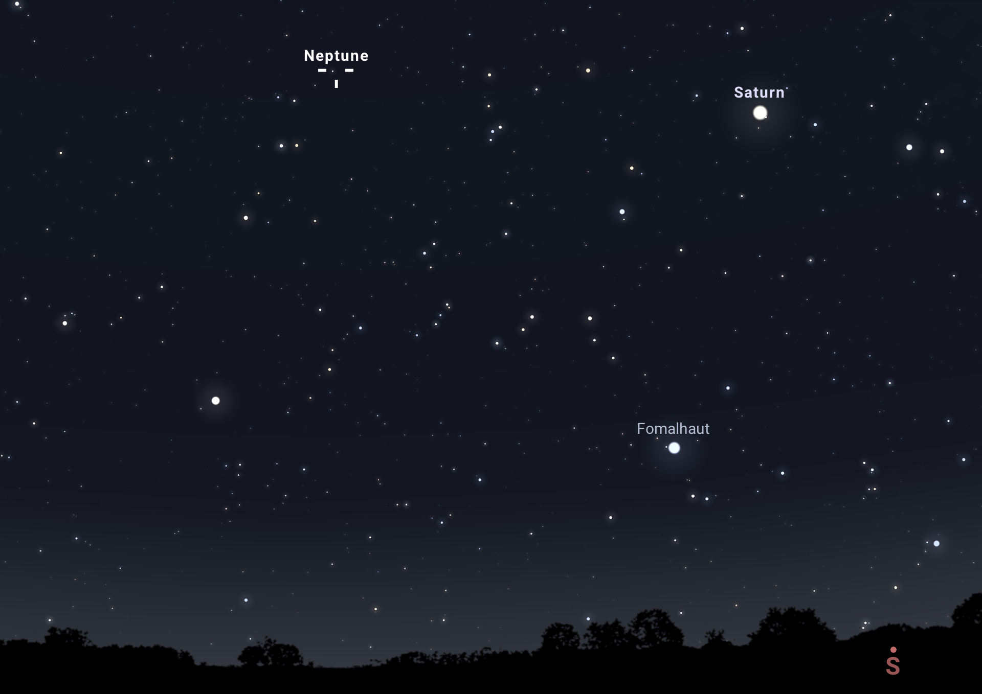 Érdekesség, hogy ugyanekkor a Neptunusz körülbelül három fokra, délnyugatra lesz a Holdtól. Kísérőnk fénye természetesen gyakorlatilag lehetetlenné teszi a bolygó megfigyelését – azért vessünk egy pillantást a tengerkék gázóriás irányába is, és nyugtázzuk, hogy valahol ott pislákol Naprendszerünk legtávolabbi ismert bolygója.