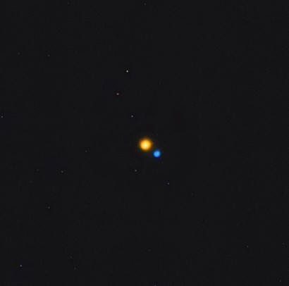 Visszatérve a kettősünkhöz, a fényesebbik tag így narancsos árnyalatú, a halványabbik pedig kékes színben pompázik. És ehhez nem is kell nagy távcsövet használnunk. Elég egy 5 cm-es távcső is 30-szoros nagyítás felett, hogy észre lehessen venni a különböző színt, illetve a kettősséget. Így összességében az égbolt egyik leglátványosabb kettőscsillagává protezsálta magát kettősünk.