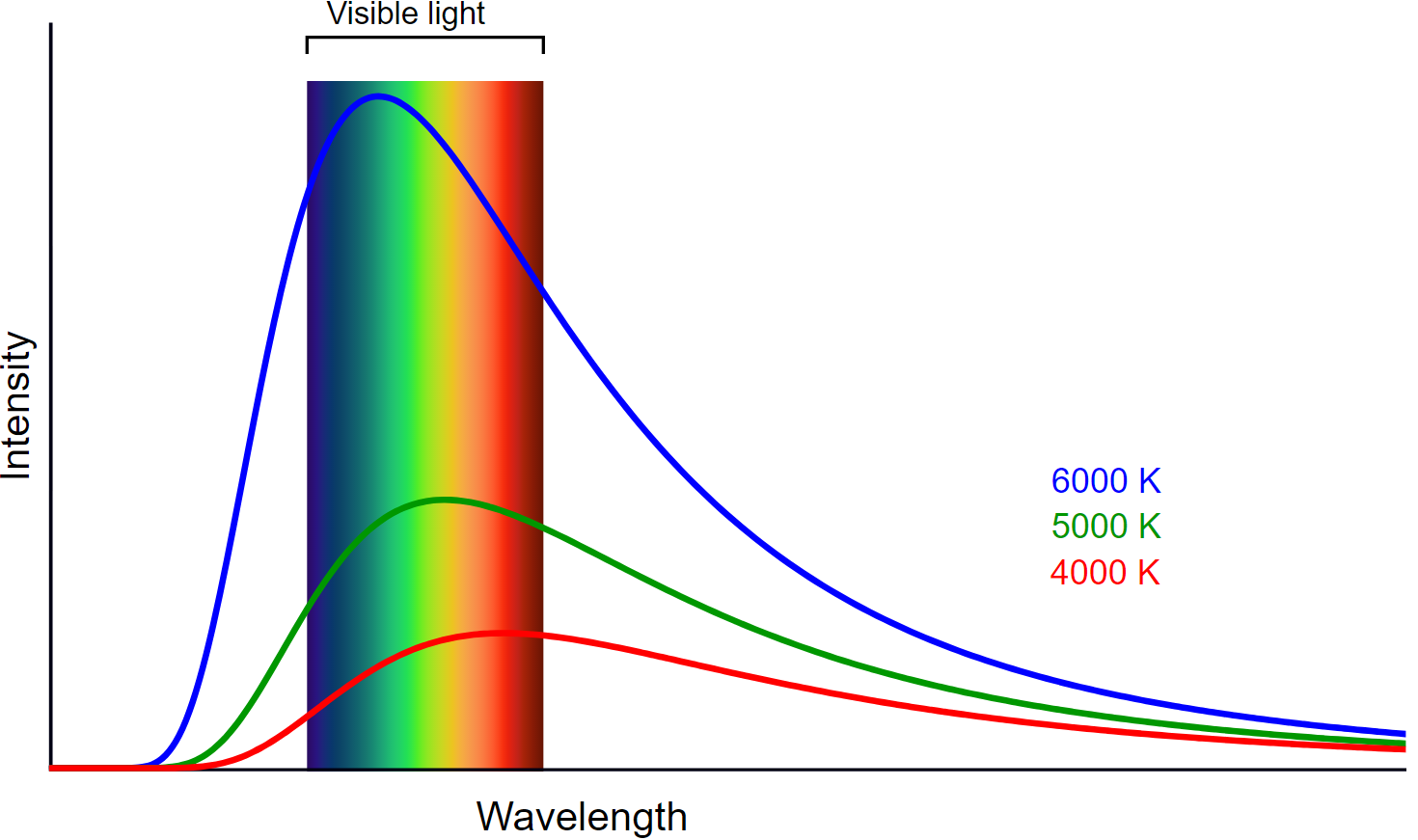 Egy test minél melegebb, annál nagyobb energiák felé tolódik az általa kisugárzott elektromágneses sugárzásának (jelen esetben fénynek) maximuma. (Ennek megfelelően például mi emberek is sugárzunk, csak olyan alacsony energián, hogy azt szemünk nem tudja érzékelni, de például a hőkamerák éppen ezt használják ki.) És mit jelent az, hogy nagyobb energiák felé tolódik? Azt, hogy a fény színe a szivárvány vörös felétől a kék felé tolódik. Itt sokakban felmerülhet a kérdés: „De hát akkor miért nincsenek zöld csillagok?” A válasz az, hogy a csillagok igazából nem egy hullámhosszon (színben) sugároznak, hanem egy úgynevezett Planck-görbe szerinti eloszlással. Így a színkeverés miatt a „zöld csillagokat” nem látjuk zöldnek. És akkor a „zöld csillagok” valójában milyen színűek? Hát fehérek. Erre a válasz már az evolúcióban keresendő, hiszen Napunk éppen egy „zöld csillag”.