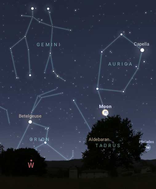 A Mars előző este is tartogat már egy szép meglepetést, érdemes meglesnünk koraesti együttállását a 98 Tauris csillaggal. A Mars az esti szürkületben, 17:11-kor, a tőle északra 5,6 ívpercre távolságban fekvő, 5,8 magnitúdó fényességű csillaggal köt majd időleges szövetséget. E barátság a Hold 30 ívmásodperces átmérőjének egyötödénél is közelebb hozza őket, binokulárban, vagy kis távcsővel pompás látványt fognak nyújtani!