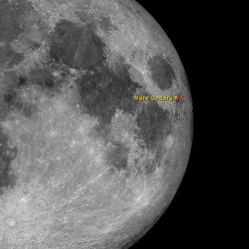 A fedés végén a Hold jobb (nyugati) oldalán, a Mare Crisium (Válságok Tengere) alatt megbúvó, kevésbé ismert, de annál érdekesebb, változatosan szabdalt arculatú Mare Undarumot (Hullámok Tengerét) érdemes beazonosítani. A mellette levő holdperemen fog újra kibukkanni vörös bolygószomszédunk.