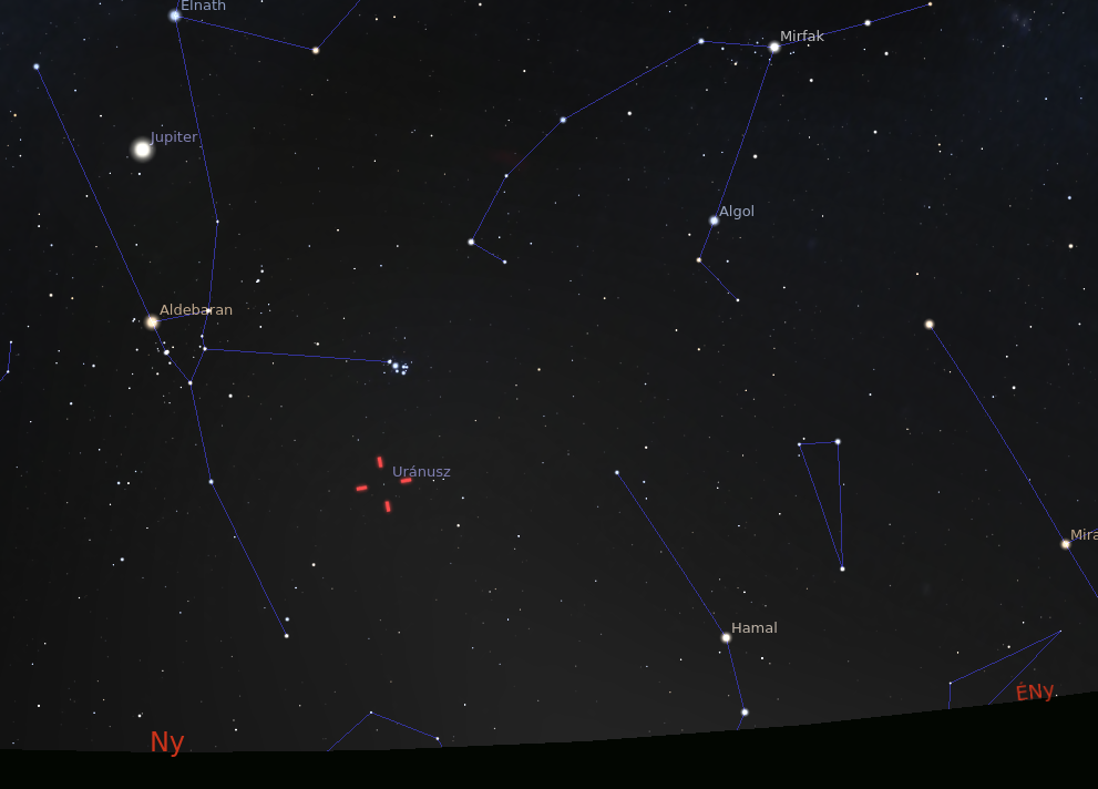 Április 13-án este, az együttállás idején az Uránusz a horizont felett 15 fokkal látszik majd, nyugati irányban. Az 5,8 magnitúdós látszó fényességű, kékes színű bolygó megtalálásához elsődleges támpontként használhatjuk a Bika csillagképet. Ez ugyanis könnyedén észrevehető legfényesebb csillaga, az Aldebaran, illetve a szabad szemmel is látható Plejádok nyílthalmaz alapján. Aki számára ezek nem igazán egyszerűen megtalálható objektumok, a Jupitert bizonyosan észreveszi majd nagy fényessége miatt, szintén a Bika csillagképben. A fényes objektumokból kiindulva jobbra lentebb megtalálható a Plejádok, alatta pedig körülbelül 6 fokkal látszik majd az Uránusz.