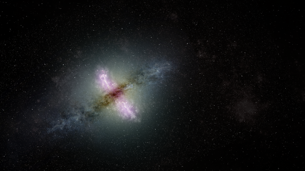 A központi fekete lyuk környezetéből kiinduló nagy energiájú plazmanyalábok jelentős hatással lehetnek magának a galaxisnak a fejlődésére, amelynek belsejében találhatók.