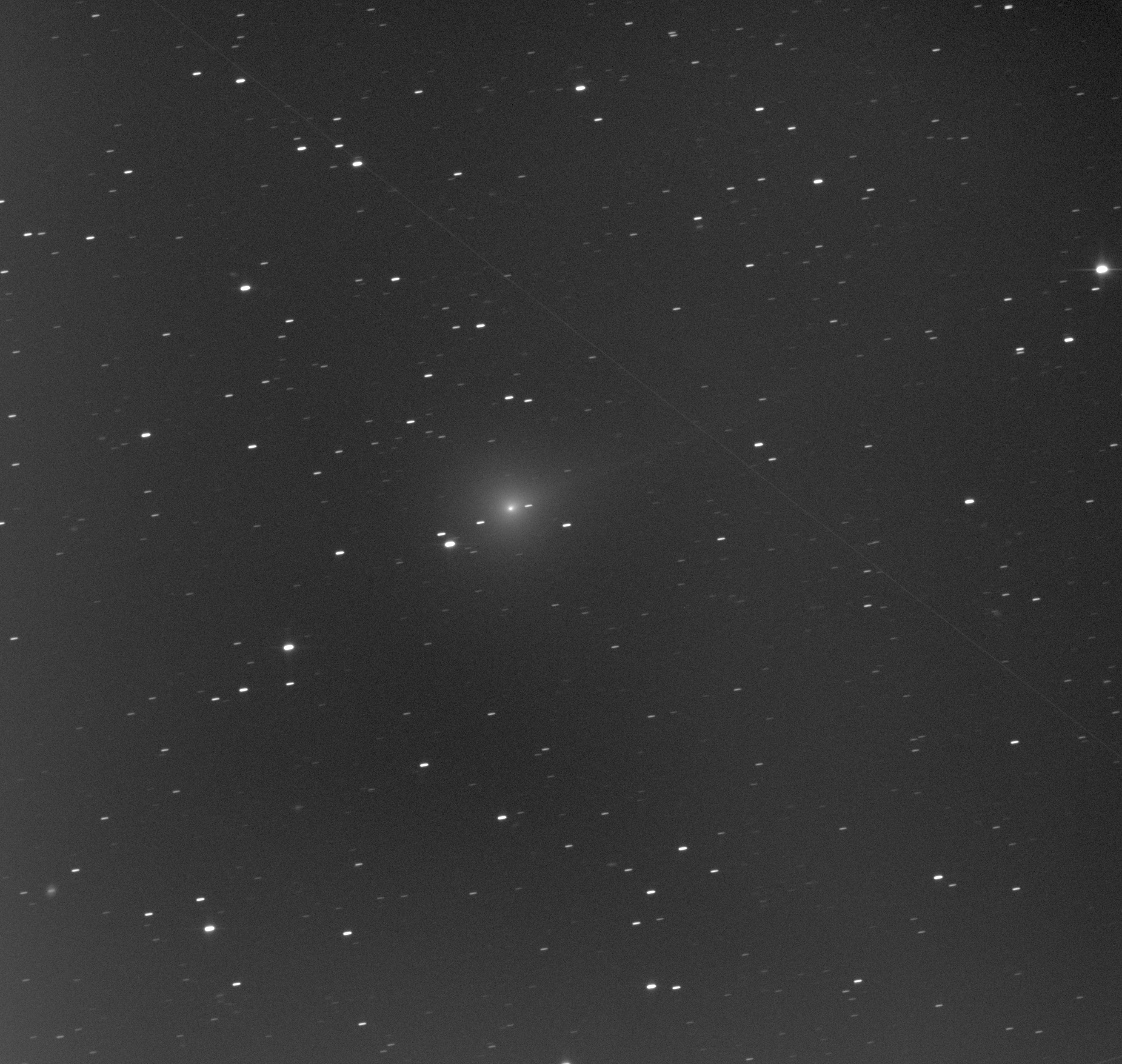 „Perihelium után egy nappal, igen gyenge körülmények között készült képek mellett 5\' csóva és a fél képen átnyúló 29\' csóva jól látható. A mag enyhén nyúlt formát mutat.”