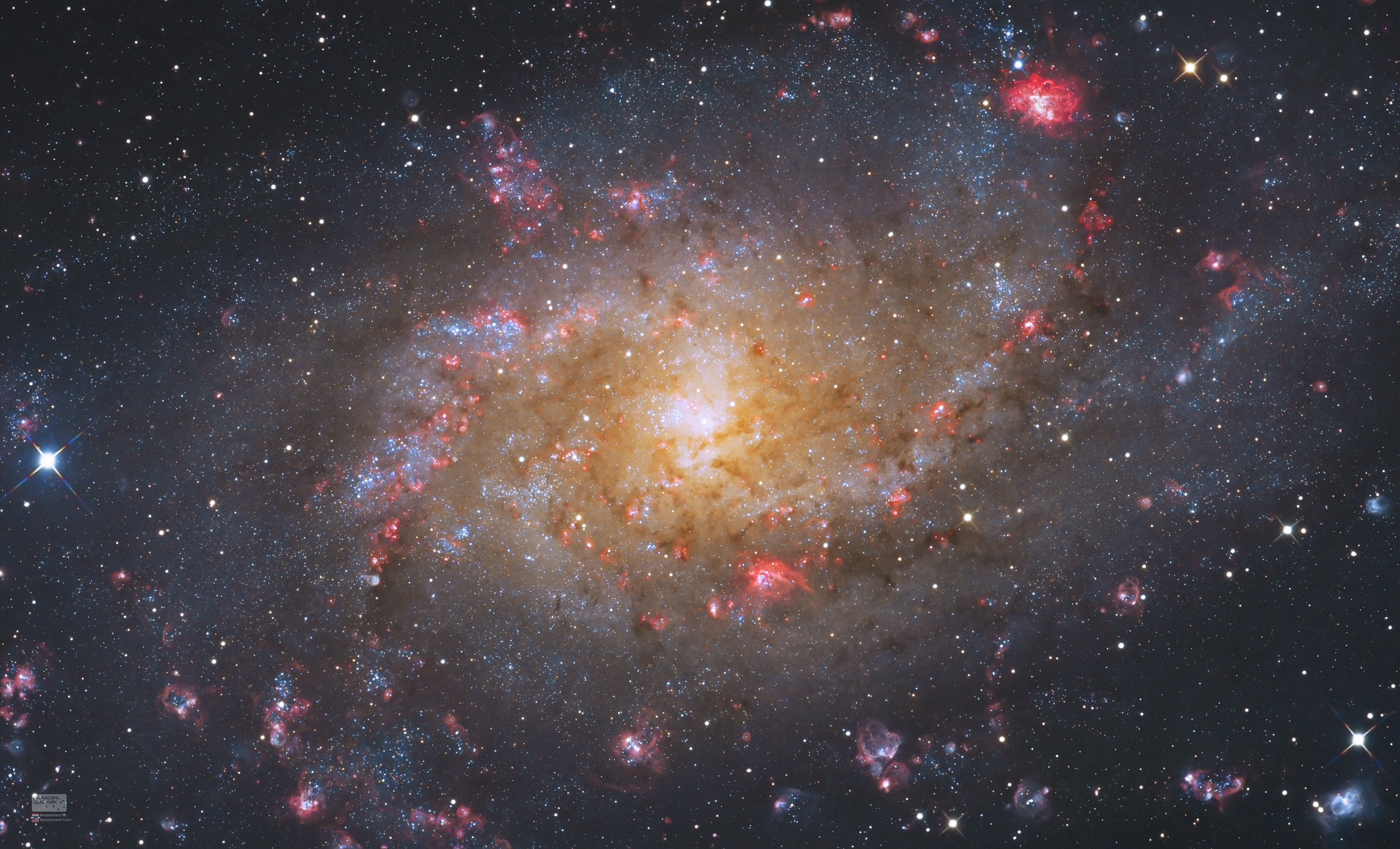 Az M33 az asztrofotósok egyik kedvenc célpontja: a hosszú expozíciók során lenyűgöző részletek bontakoznak ki, az NGC 604 vörös fénylésétől a spirálkarokat kirajzoló csillagkeletkezési régiókig.