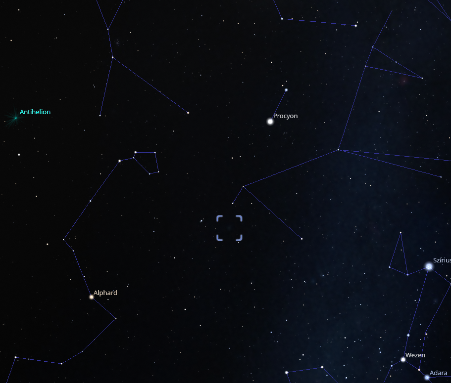 Az észlelésre a kora tavasz a legmegfelelőbb, amikor az Egyszarvú és az Északi Vízikígyó csillagképek viszonylag magasan járnak esténként az égen.