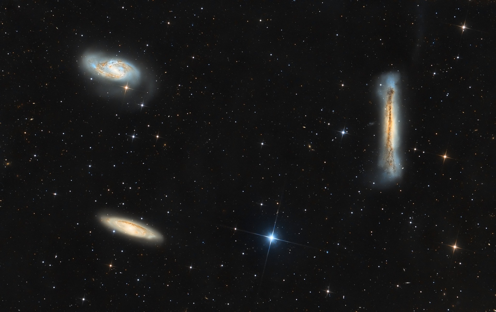 Ez a három galaxis fizikailag is kapcsolatban áll egymással, ugyanannak a galaxishalmaznak a tagjai, és kölcsönhatásaik látványos nyomokat hagytak rajtuk. A Messier 66 spirálkarjai is azért ilyen különös formájúak és aszimmetrikusak, valamint a galaxis központi része is emiatt lett rendkívül sűrű.
