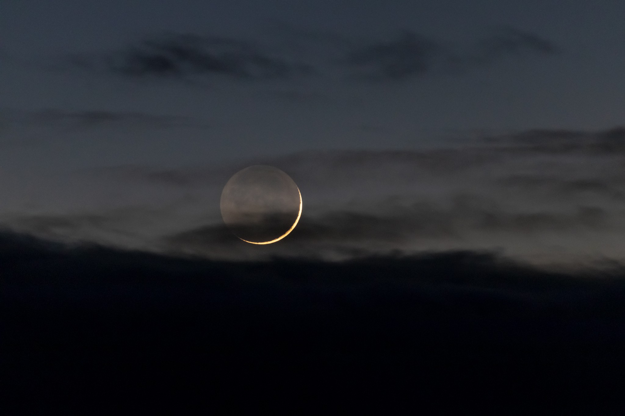 Természetesen igaz, hogy a felhők rontják az esélyeket. További fontos tényezők is számítanak, hiszen a horizont közelében észlelünk. Akár a távoli erdőtüzek füstje vagy a sivatagi eredetű por is jelentősen csökkentheti a Nap fényét naplemente vagy napfelkelte idején — így a sarlót is eltüntetheti az égről. Valamelyest segíthet, ha a közelben magas hegy található, de tapasztalataim szerint ez sem mindig megoldás. A légkör nyugodtsága szintén fontos szempont, különösen, ha nagyon fiatal sarlót szeretnénk megtalálni.