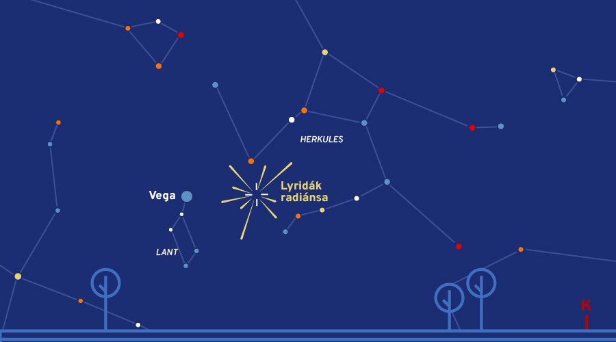 A meteorok kiindulási pontja határozza meg az adott meteorraj nevét is. A Lant csillagkép latin neve a Lyra, így kapta a Lyridák nevet. Egy fényes csillag, a Vega segíthet a megtalálásában, de ha nem vagyunk gyakorlottak a csillagképek felismerésében, vigyünk magunkkal egy csillagtérképet, akár telefonunkon használjunk egy appot, de csak az észlelés elején pillantsunk rá, mert a szemünknek legalább 20 percre van szüksége, hogy alkalmazkodjon a sötéthez.