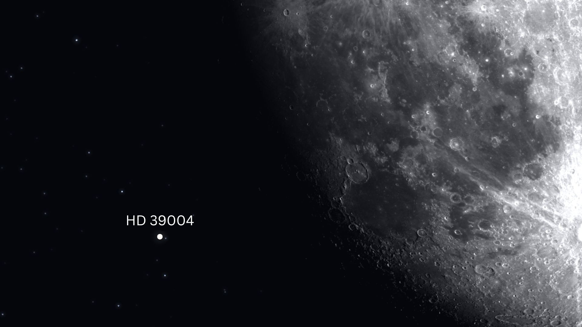 29-én este 20:09-kor a csillagot eltakarja égi kísérőnk. Az esemény 1 óra 16 percig tart, egészen 21:25-ig. Ekkor a HD 39004 felbukkan a Hold fényes oldalán, de csak nagy távcsővel tudjuk majd megfigyelni. A belépés időpontjában a csillag 68° magasan lesz, közeledve a deleléséhez. A kilépés nem sokkal a delelése után következik be, attól 15°-kal nyugatabbra, 70°-os horizont fölötti magasságban.