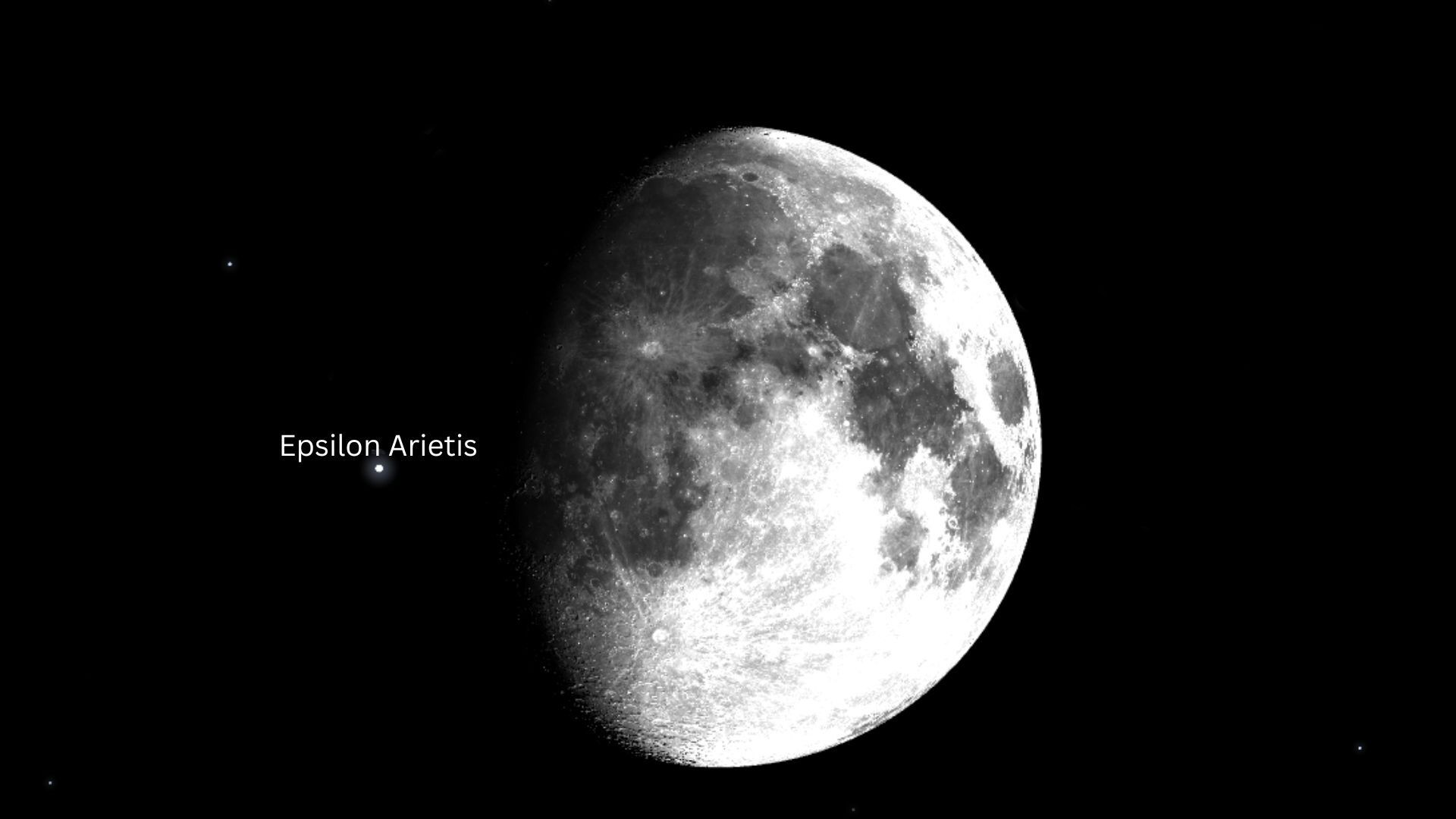 Az epszilon Ari kettőscsillag, ami azt jelenti, hogy a rendszerben két csillag kering egymás körül, 5,2 és 5,6 magnitúdósak, egymástól 1,3”-re. Egy nagy nagyításra képes távcső segíthet két külön objektumnak látni őket. A december végi fedés alkalmával a két komponens külön-külön, egymás után tűnik el égi kísérőnk sötét oldala mögött. A két égitest takarása között mindössze 1,0 másodperc telik el.