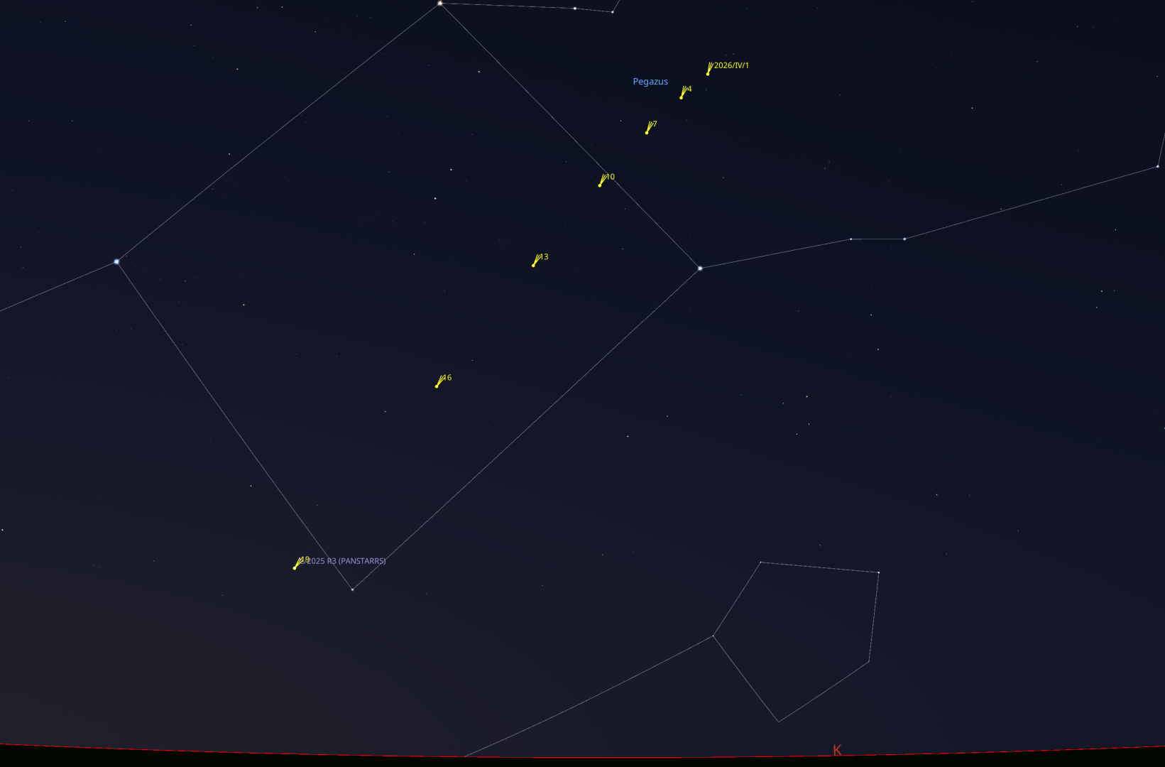 Az ezután következő napokban már kicsit később érdemes keresni, hajnali 04:30 táján, a Pegazus négyszög belsejében, annak a látóhatárhoz közelebbi részén látható majd a kométa.