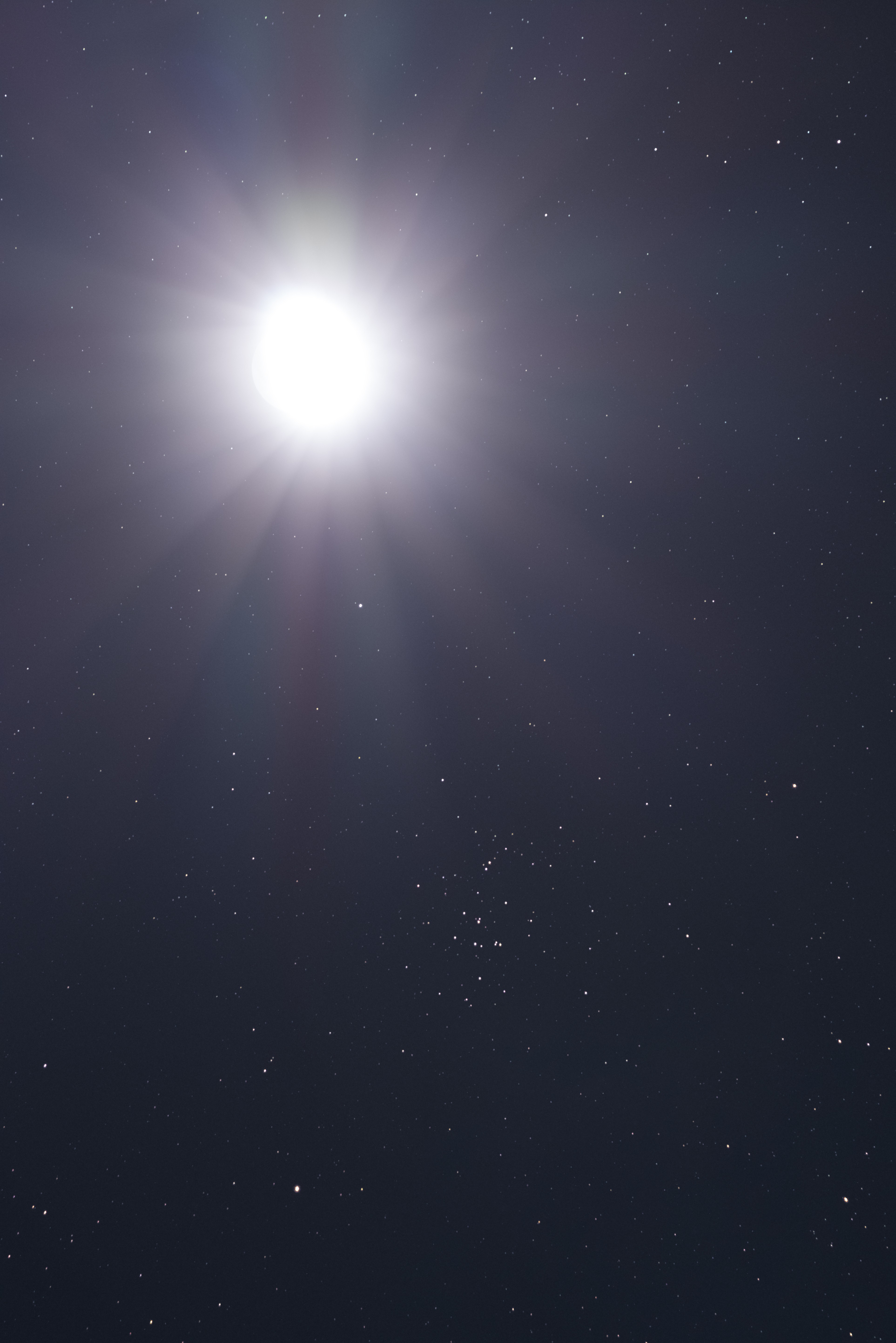 Ma este a 73%-os Hold a Föld körüli keringése során egyre közelebb látszik a halmazhoz. A legkedvezőbben 01:00-kor figyelhetjük meg őket, ekkor a két objektum közötti szögtávolság 2,4 fok lesz, így binokulárral kényelmesen megfigyelhetők egy látómezőben.