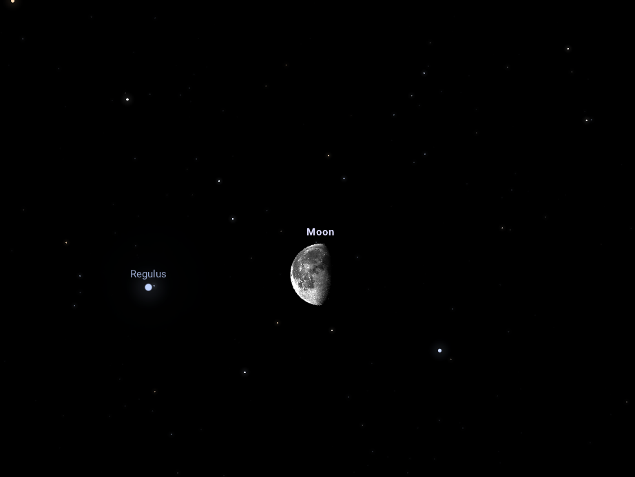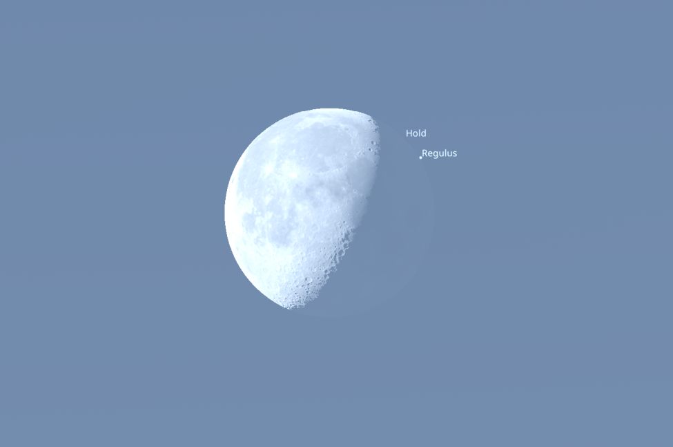 a csillagos égbolt ugyanis szabad szemmel is megfigyelhető együttállással nyitja a napot, majd később a nappali égen is megfigyelhető csillagfedéssel koronázza azt. Az Oroszlán csillagképben járó Hold reggel 6 órakor együttállásba kerül a csillagkép legfényesebb csillagaként ismert Regulussal, majd később, amikor már a Nap is felkelt, égi kísérőnk elfedi a Regulust! A fedés 8:52 és 9:36 között fog tartani majd, így érdemes résen lenni ebben az időszakban, különösen a belépés, illetve a kilépés idején. Bár a Regulus az éjszakai égbolton fényes, szabad szemmel is látható csillagként jelenik meg, a fedés megfigyeléséhez, mivel nappal történik, mindenképpen távcső használata javasolt.