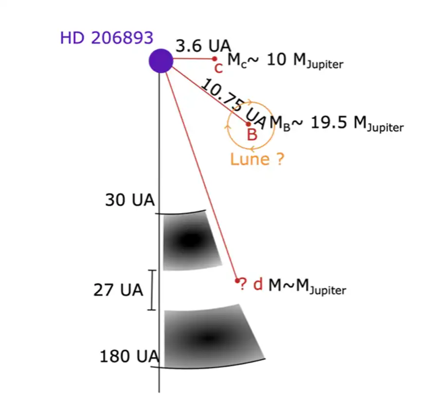 A helyzetet bonyolítja, hogy a fiatal csillagot körülveszi egy törmelékkorong is a két égitest pályáján kívül, amelyben van egy rés. Ez egy harmadik, ezúttal 1 jupitertömegű bolygó jelenlétére utal.