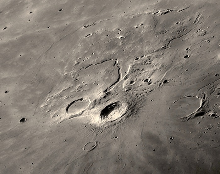 - Hold – Aristarchus és Herodotus kráter: a rendkívül fényes Aristarchus kráter, és a lávával feltöltött Herodotus kráter kontrasztos párost alkotnak. Közülük ered egy sötét, mély, kanyargózó rianás, a Schröter-völgy, ami egy régi, kiürült lávacsatorna.