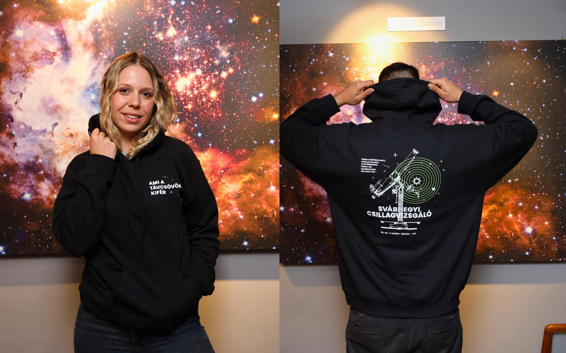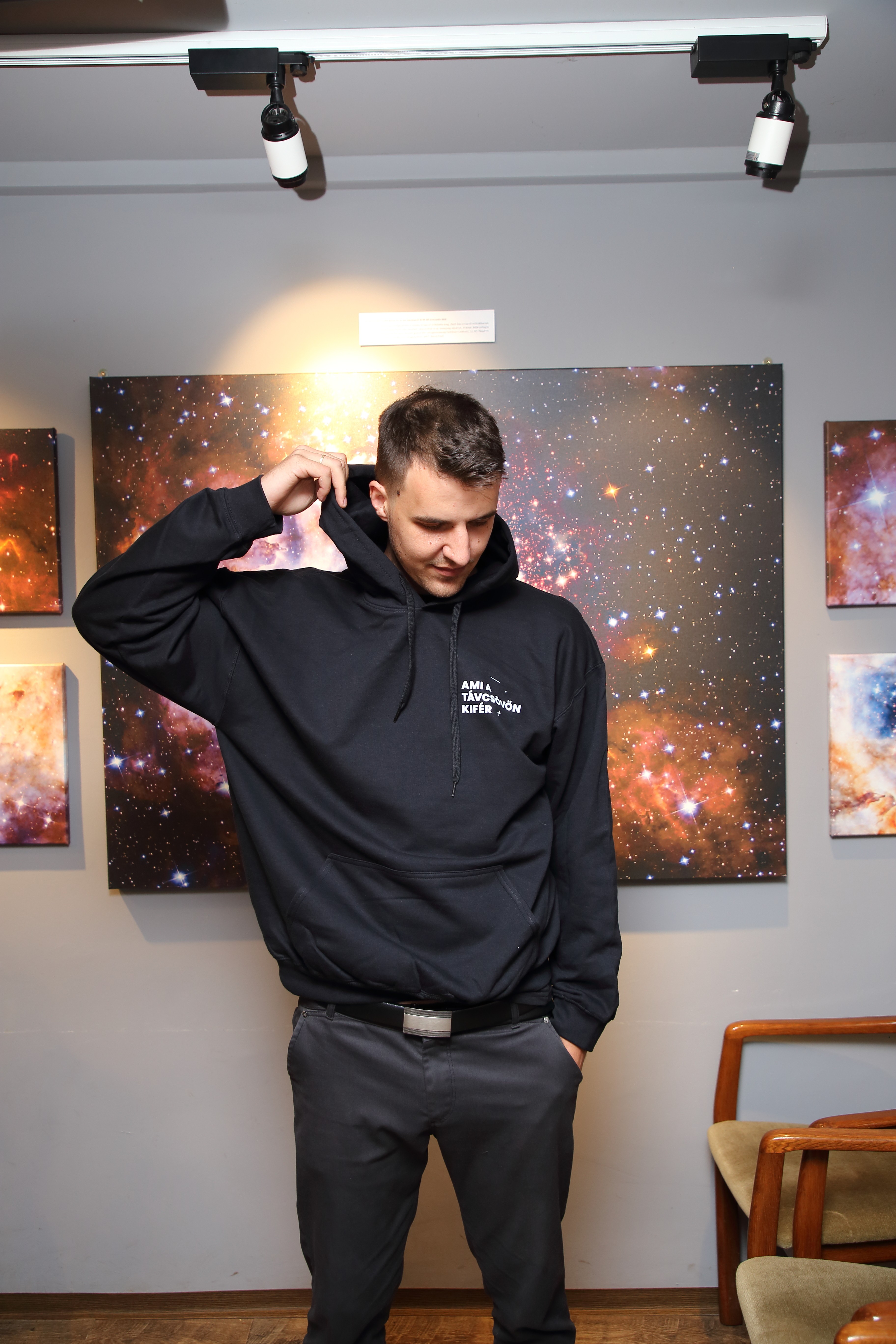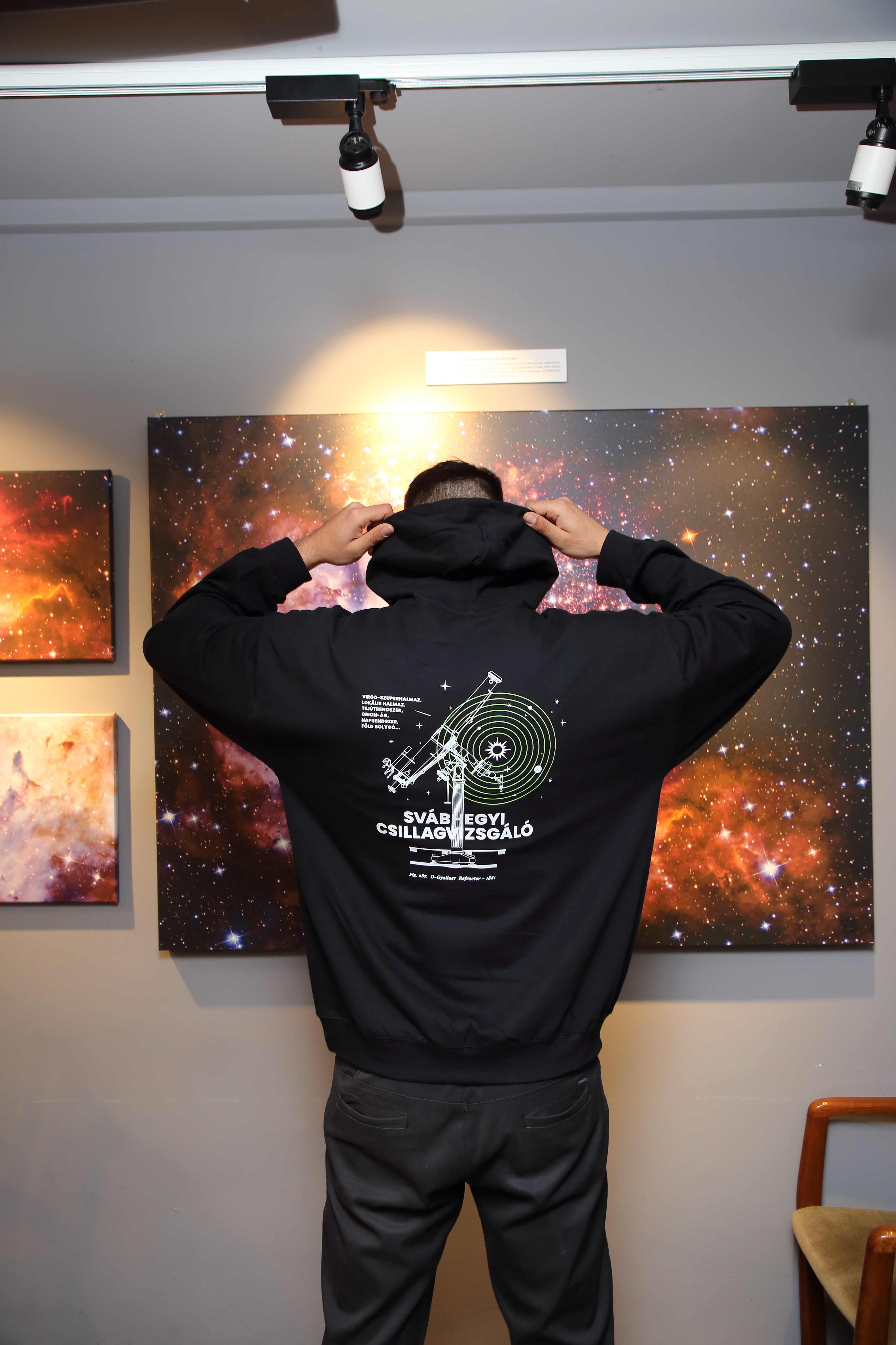 Bebújós kapucnis pulóver - Egyedi tervezés, magas minőség! Támogasd a tudományt, viseld magadon büszkén a Svábhegyi Csillagvizsgáló fekete kapucnisát!